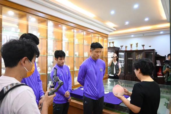 9月24日上午,津门虎球员于洋、谢维军、石炎一行来到我校滨海校区。体育教学部主要负责同志及企业相关负责人到现场迎接。三名球员首站来到化工与材料学院盐业展室,参观了解我校“盐业黄埔”的发展历史,感受“盐文化”的博大精深。