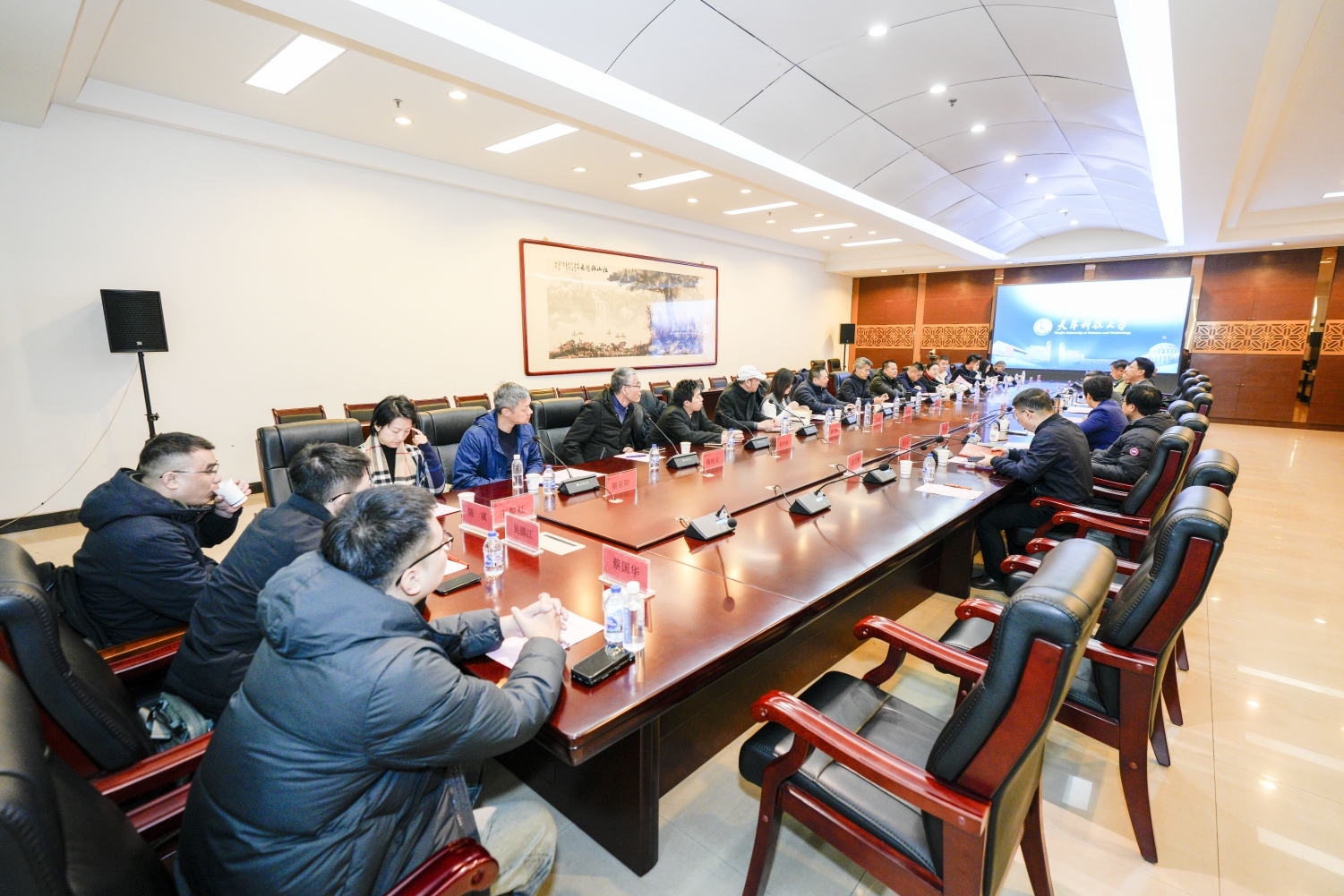 我校宣传部、科技处、人工智能实践基地、校友中心、生物学院、食品学院、轻工学院、艺术学院主要负责同志参会,围绕成果转化、科技创新等话题进行了详细介绍,与到访的企业家代表就推动产学研融合发展等事宜进行深入探讨。