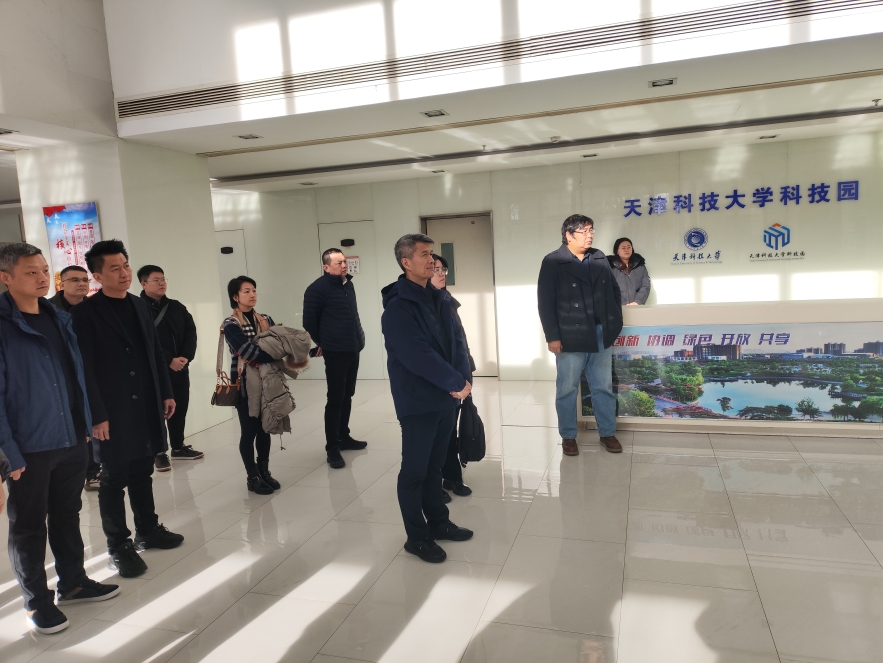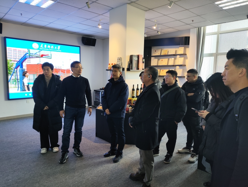 座谈会前,郭浪滔一行参观了学校食品工程技术中心、省部共建食品营养与安全重点实验室、人工智能实践基地和天津精东影业科技园。