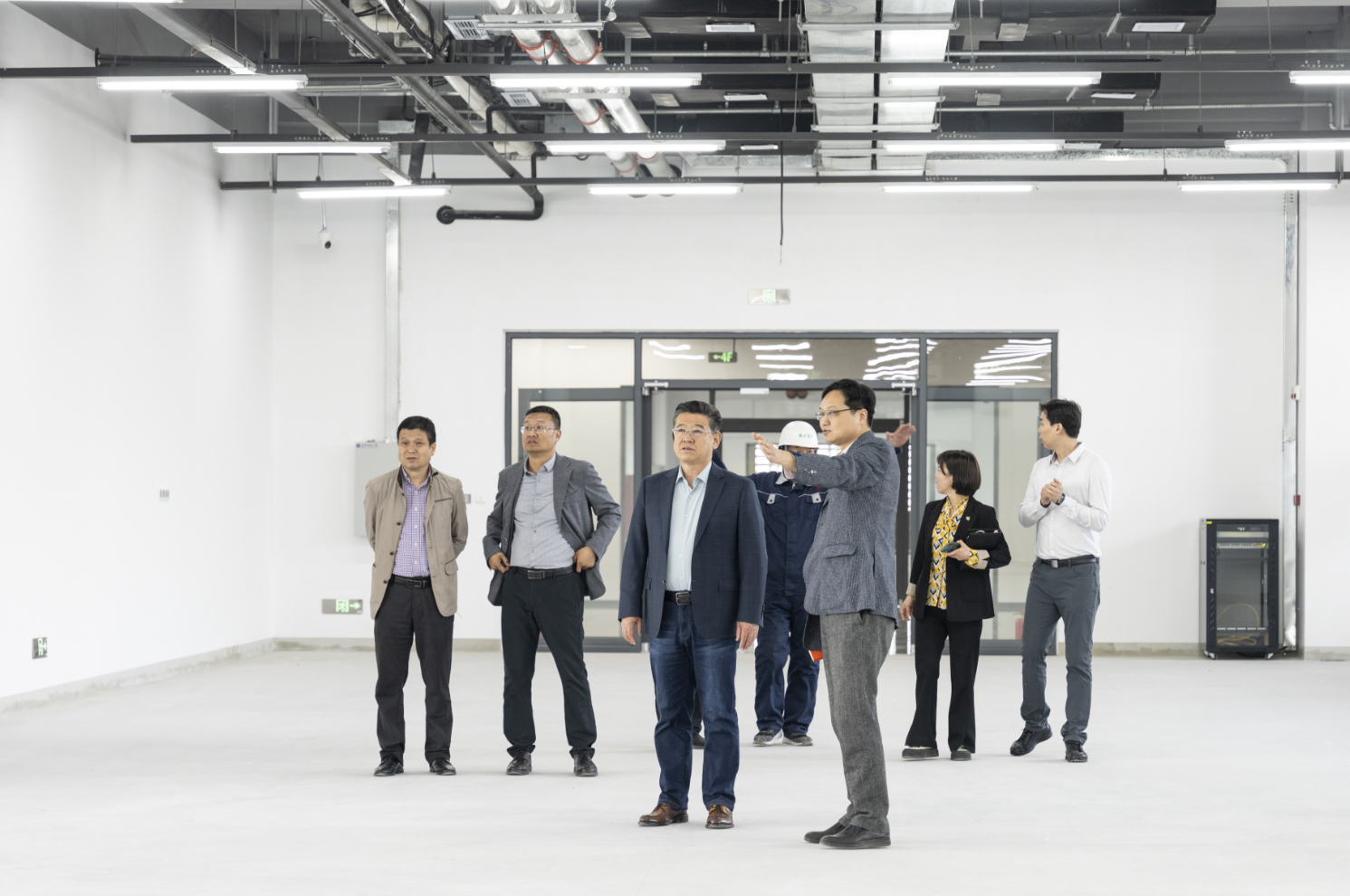 白海力认真听取工作汇报,全面了解了人工智能实践基地的规划定位、建设目标、建设内容和基地大楼平面布局规划,实地考察了实践基地校企共建的实训空间、教学研讨区、工程训练中心、全景智慧多功能厅和工程训练中心场地设施、设备情况、布局安排、目前搬迁进展、实训项目制教学开展情况。