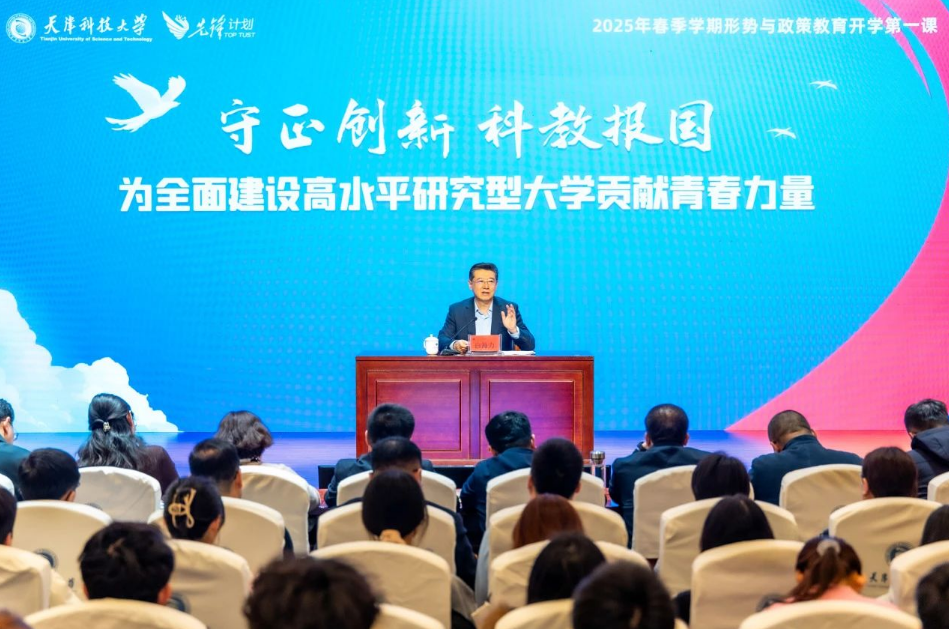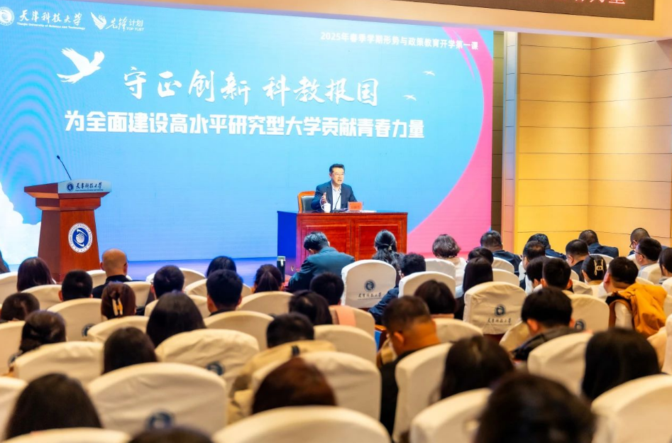 为深入贯彻党的教育方针,落实立德树人根本任务,主动融入和有力服务教育强国和教育强市建设,扎实做好学生形势与政策教育,3月6日上午,在滨海校区逸夫楼报告厅,校党委书记白海力以深入学习贯彻学校第四次党代会精神为切入点,以《守正创新 科教报国 为全面建设高水平研究型大学贡献青春力量》为题,带领学校师生同上“开学科技创新第一课”,同答“全面建设高水平研究型大学第一题”,学生工作干部、研究生代表等240余人到场参会。党委宣传部负责同志主持会议。