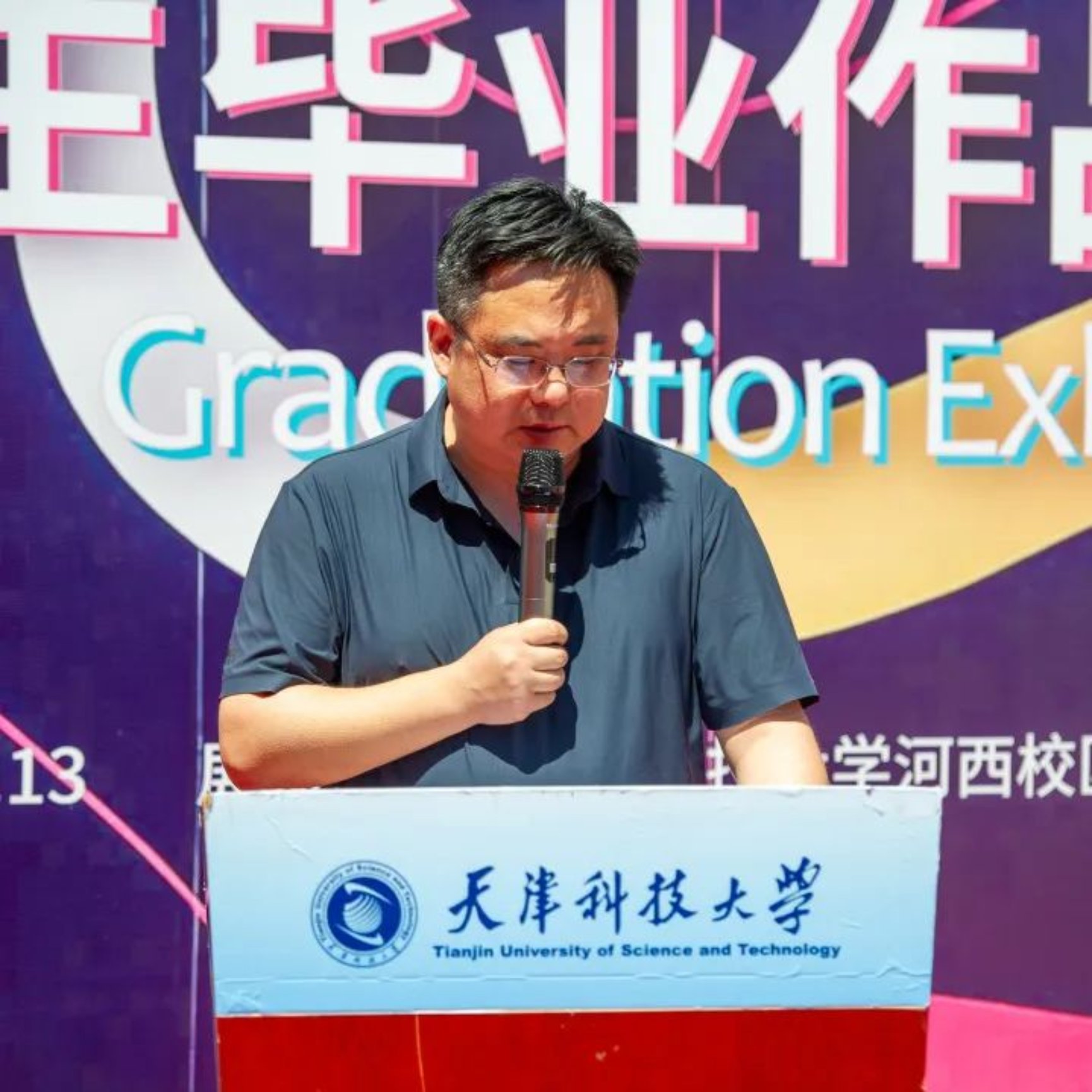 艺术设计学院院长张志宇发表毕业寄语。他深入解读了“先锋”与“新生”的内涵。“先锋”源自科大人的核心精神,“新生”不仅意味着作品的诞生,更代表思维的重塑和价值观念的觉醒。他指出,本次展览不仅是毕业生身份的终结,更是“设计新生”的起点,并期望他们在更广阔的舞台上展现“艺术先锋”的风采。