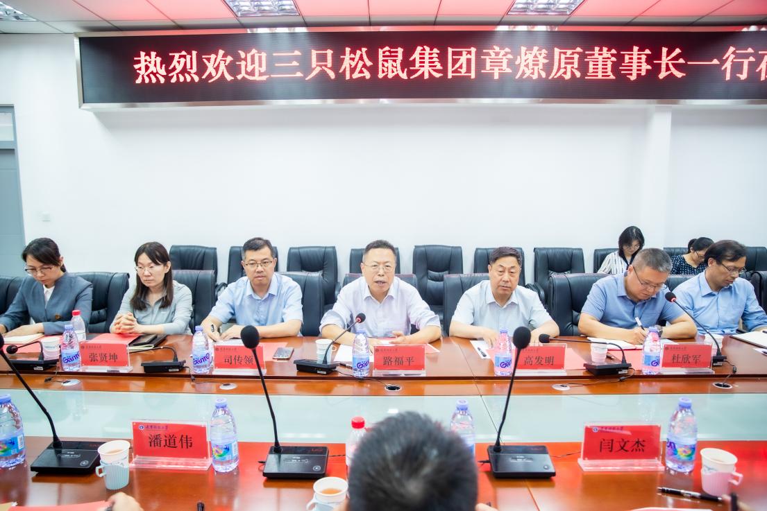 路福平对三只松鼠集团来访表示热烈欢迎,并对学校的概况、历史沿革、办学特色以及与企业合作的愿景进行了介绍。他强调,学校高度重视校企合作,希望通过与三只松鼠等优秀企业的合作,进一步完善人才培养方案,培养出更多符合企业需求的高素质人才。