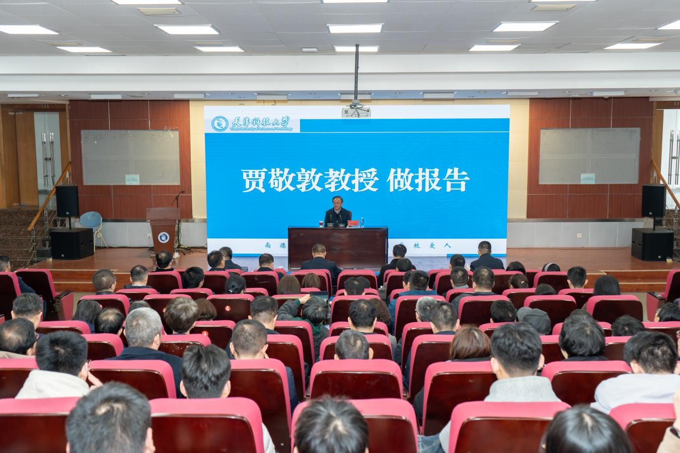 3月11日下午,受校党委副书记、校长路福平邀请,海河科创学院名誉院长、中国科学院科技战略咨询研究院特聘研究员、原科技部火炬高技术产业开发中心主任贾敬敦教授到校作专题报告,机械工程学院师生近200人参加,报告会由机械工程学院院长李文辉主持。