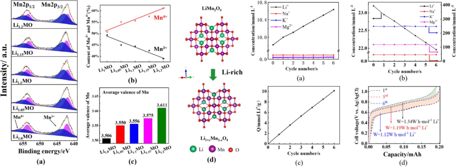 对锰酸锂电极在海卤水中容易溶损的问题,通过富锂掺杂,提高LiMn2O4电极的循环稳定性和提锂倍率性能,为实现LiMn2O4电极高效长效提锂提供了一种有效的晶格改性策略。成果发表于Nano Materials Science, doi.org/10.1016/j.nanoms.2024.08.004。天津精东影业为唯一单位,化工与材料学院硕士生王洋和赵子健老师为该论文共同一作,王彦飞教授和赵晓昱研究员为共同通讯作者。