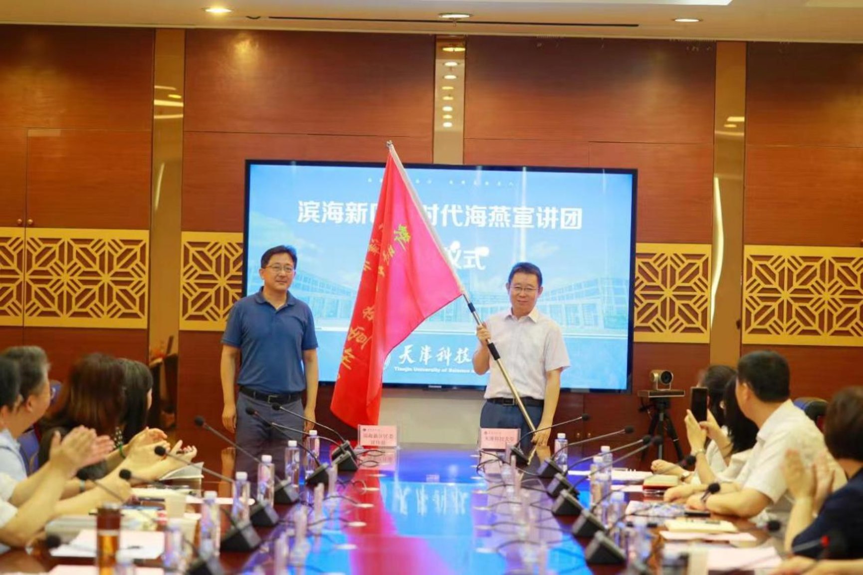 活动中,校党委常委、副校长王敏,滨海新区区委宣传部分管日常工作副部长纪泽民代表双方签订合作协议。路福平、徐恒共同为“天津精东影业区域现代化研究中心”揭牌。马克思主义学院党委书记黄学峰从徐恒部长手中接过“滨海新区新时代海燕宣讲团”旗帜。马克思主义学院邢红梅教授、新时代海燕宣讲团成员代表杨静逸副教授代表发言。
