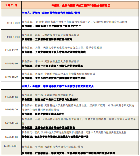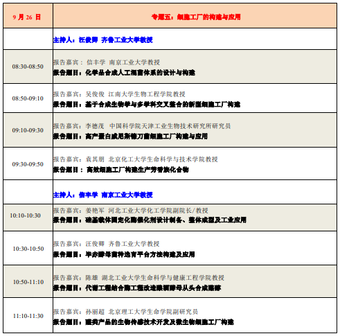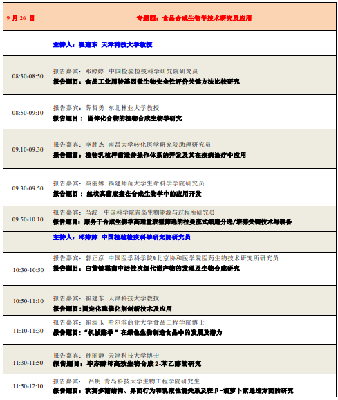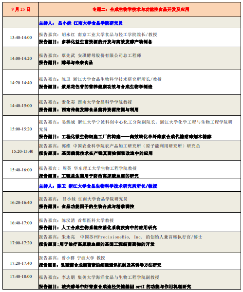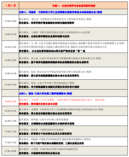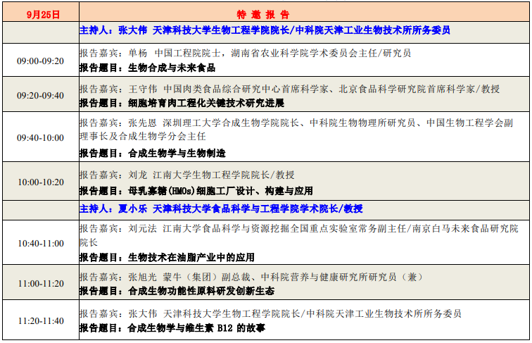 首届合成生物学技术食品应用交流大会暨生物与医药卓越工程师创新论坛报告安排
