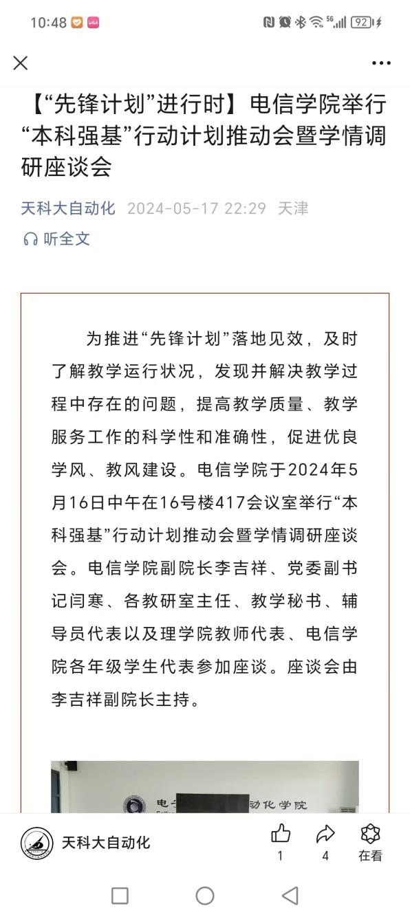 电子信息与自动化学院党委在“先锋文化”宣讲讨论活动期间,召开专题工作会议,集中学习《“先锋计划”之科大共识》,制定实施方案,以“我眼中的先锋文化”为题开展主题征文活动,征集干部师生关于发展“先锋文化”的意见和建议。录制“先锋文化”宣讲微视频,引导教育广大干部师生树牢“先锋意识”、坚持“先锋标准”、弘扬“先锋精神”、涵养“先锋文化”,在落实“先锋计划”、服务学校发展中当先锋、作表率。