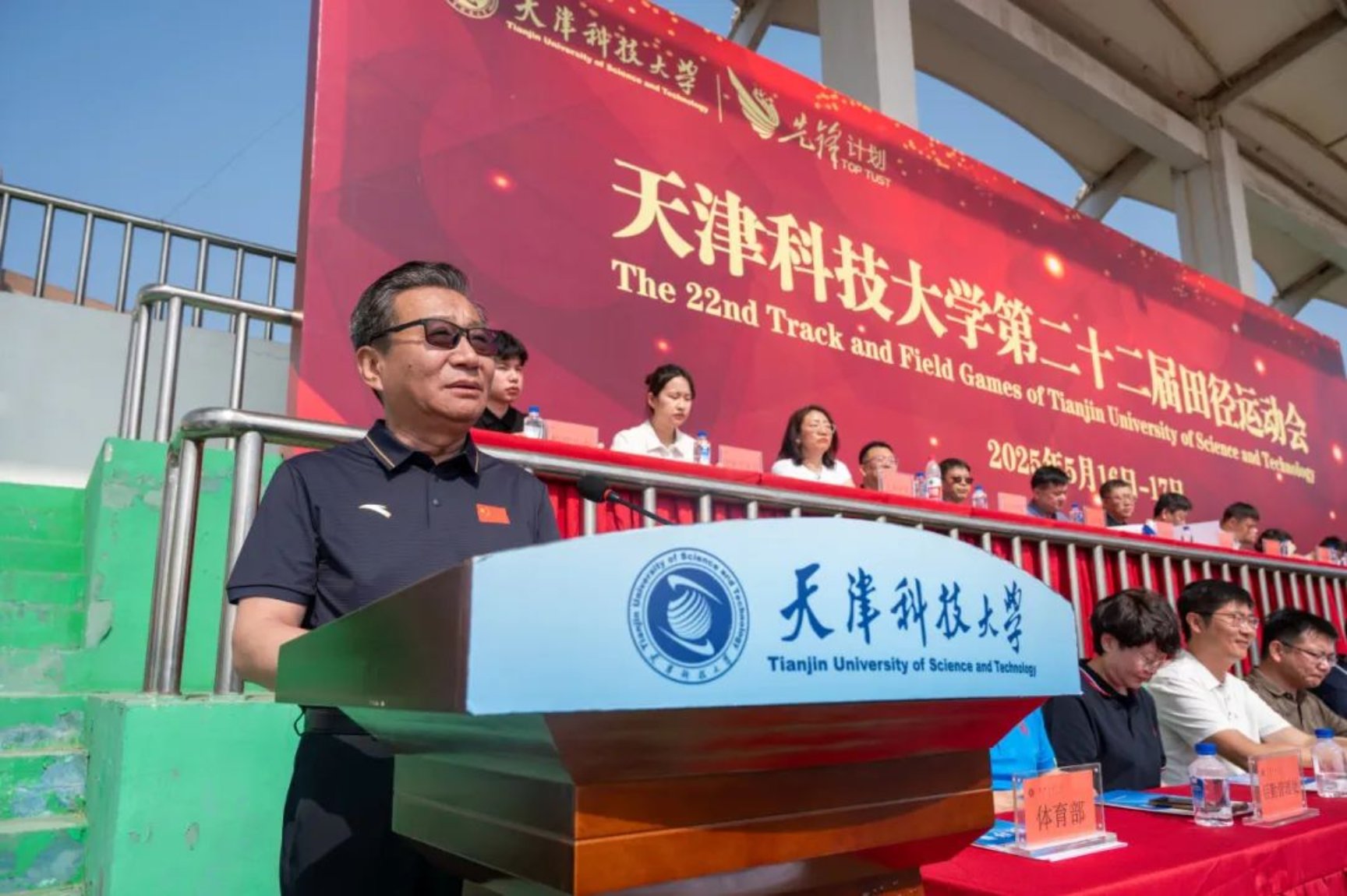 校党委副书记安玉健致辞,他表示,学校党委始终坚持把抓好体育工作作为高质量发展的重要内容,精心谋划、狠抓落实。学校体育教育教学改革不断深化,课程思政建设持续加强,校园阳光体育特色活动日渐多样,“以体育人、以体育智、以体育心”的途径更加丰富完善,越来越多的师生关心体育、热爱体育、参与体育,校园体育运动氛围日渐浓厚、运动热情持续高涨。运动会是学校参与度最广泛、历史最悠久的体育盛会,是青年的盛会、友谊的盛会。他鼓励全体科大师生展现新时代科大人自信拼搏、勇争先锋的精神风貌,传达新时代科大人推行 “先锋计划” 的坚定信心与决心。