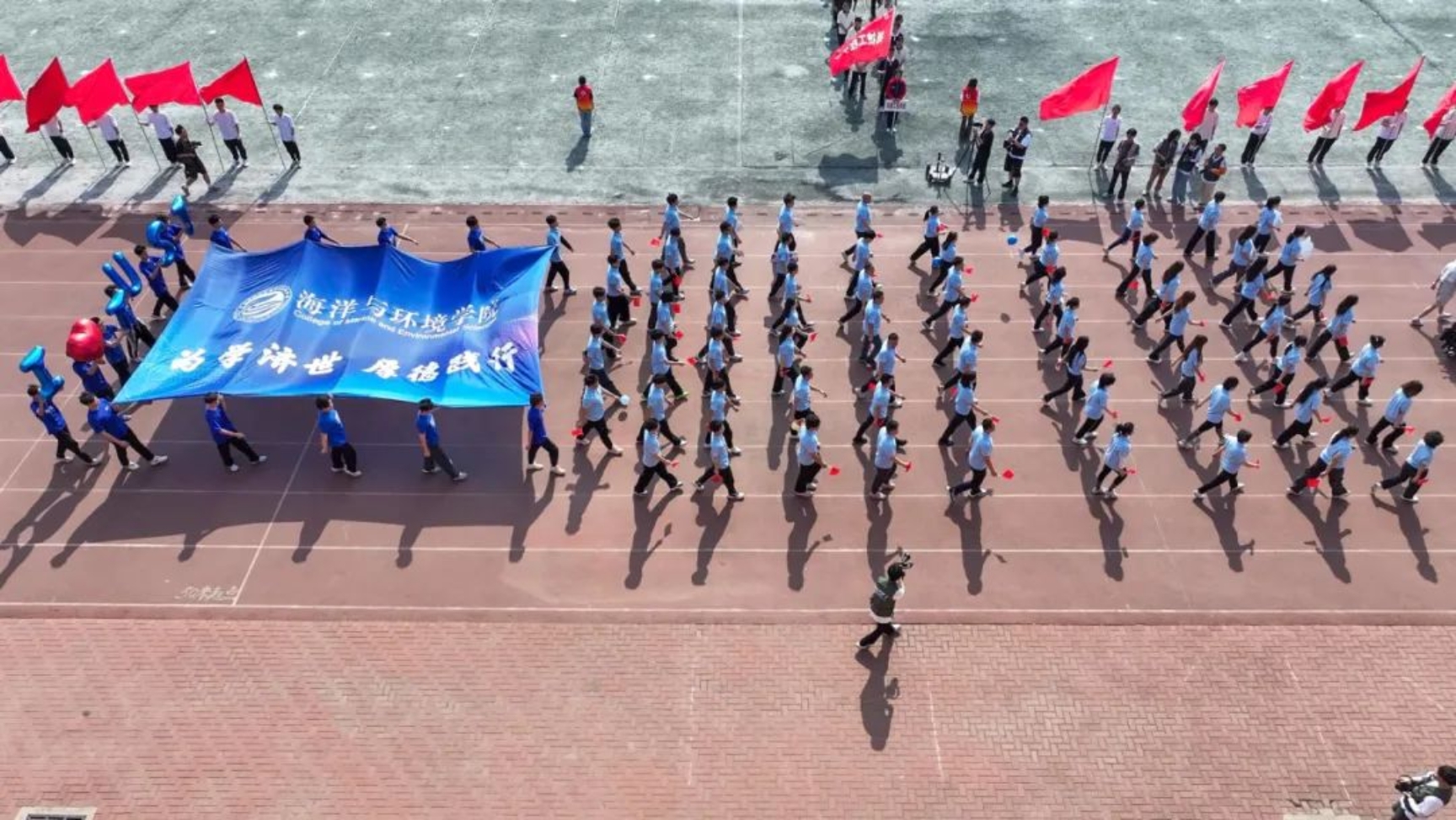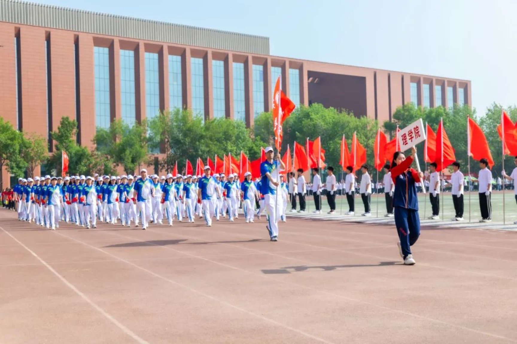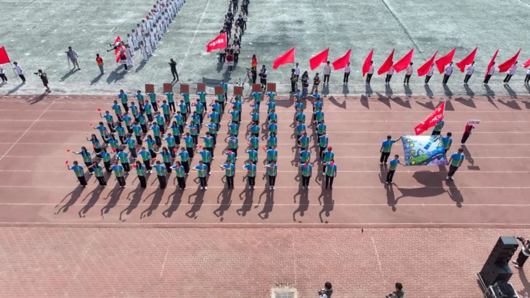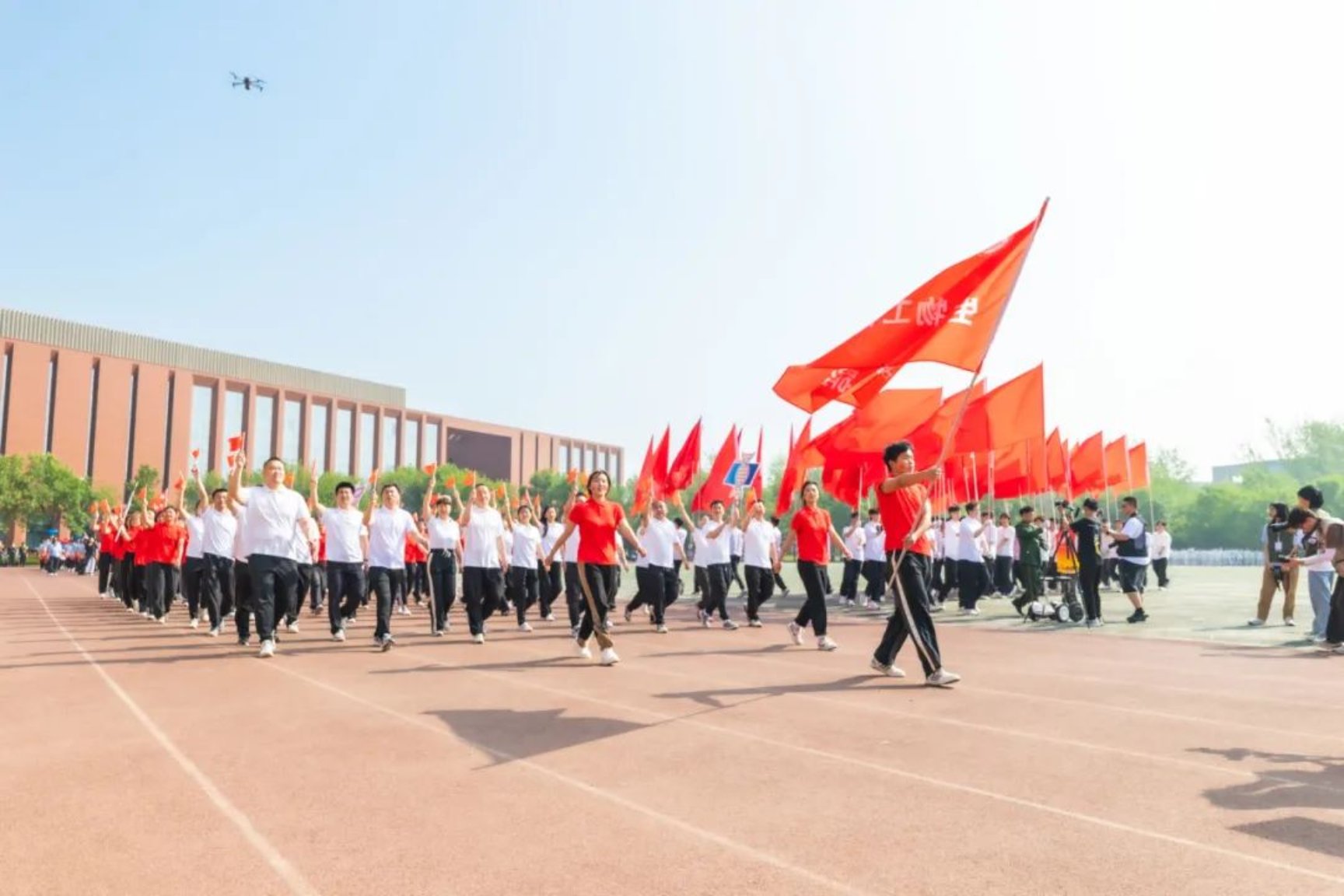 伴随着激昂的乐声,校旗方队、旗海方队、各参赛方队踏着整齐的步伐依次入场。他们口号响亮、斗志昂扬。