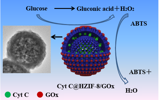 金属有机骨架材料(Metal-organic frameworks, MOFs)是一类新兴的多孔材料,具有良好的孔隙结构和晶体结构、良好的生物相容性、良好的化学/机械稳定性和较高的比表面积,是开发enzyme@MOF复合材料的理想宿主基质。大多数enzyme@MOF复合材料具有优异的催化性能和较高的稳定性。在过去的十年里,人们做了许多努力来开发具有潜在应用的enzyme@MOF复合材料。MOFs的维数对enzyme@MOF复合材料的催化性能有显著影响。科研团队在总结已有众多研究报道的固定化策略条件下,提出了“固定化但不僵化”的固定化策略,提出0维加的MOF(0D+MOF)材料是酶的固定化领域新的研究方向之一。在该策略的指导下,近期于Journal of Colloid and Interface Science杂志上发表了相关的研究内容,构建了新型的多级孔MOF固定化酶取得了较好的催化性能。