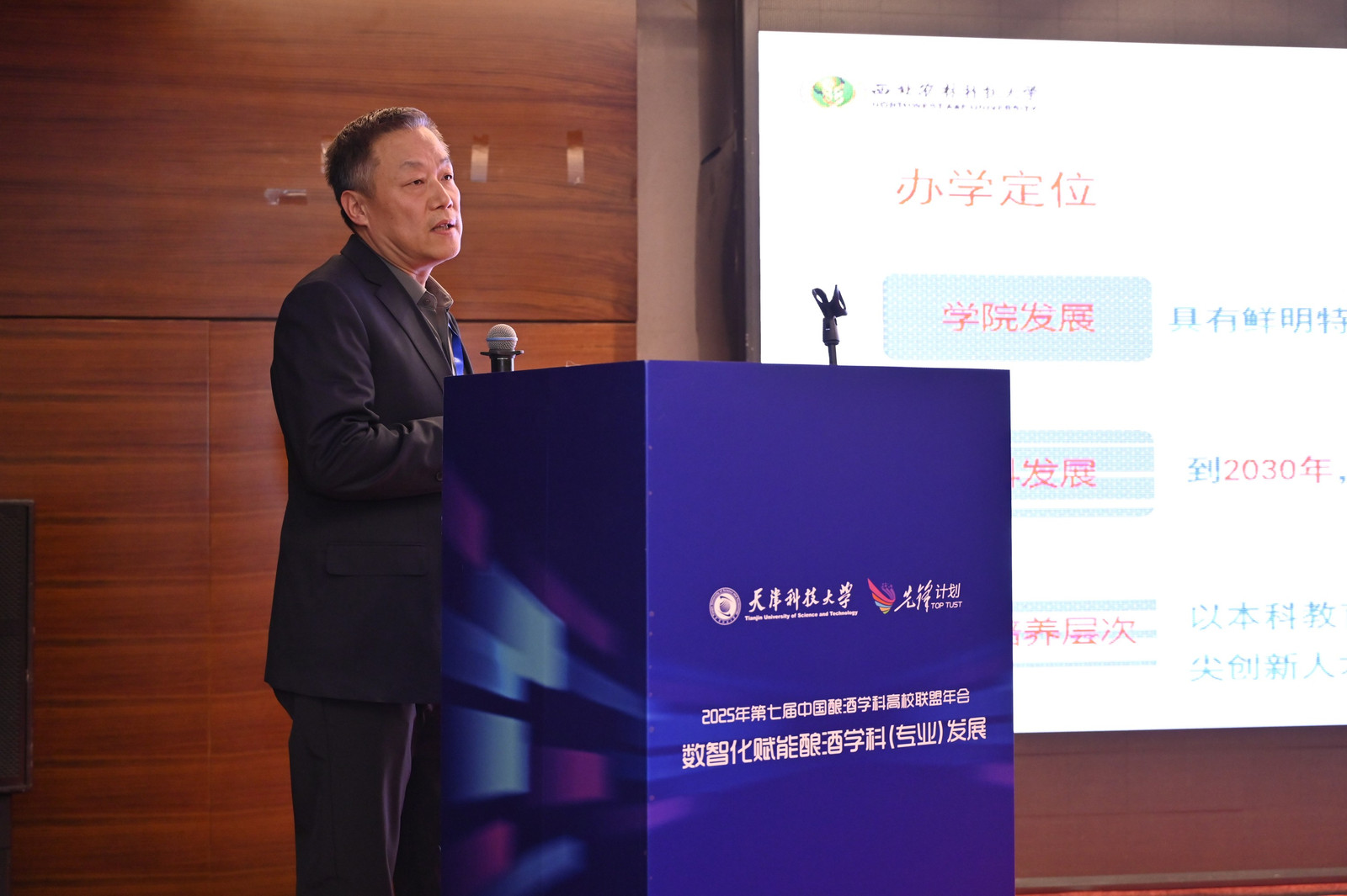中国酿酒学科高校联盟理事长徐岩教授通过线上方式致辞,指出酿酒行业正经历历史性变革,第四次工业革命与国家将酿酒列为历史经典产业的双重背景,为学科发展带来机遇与挑战。他强调,“数智化赋能”并非简单叠加数字技术,而是要将数据科学与人工智能深度融入从微生物代谢到风味品评的全链条,重塑知识体系与研究范式。徐岩呼吁各高校共建开放协同的产学研数字生态,共享数据、共建平台,共同培育能驾驭智能工具、深谙酿造科学的新一代复合型人才,助力中国酿酒学科在数字革命中抢占先机、引领未来。