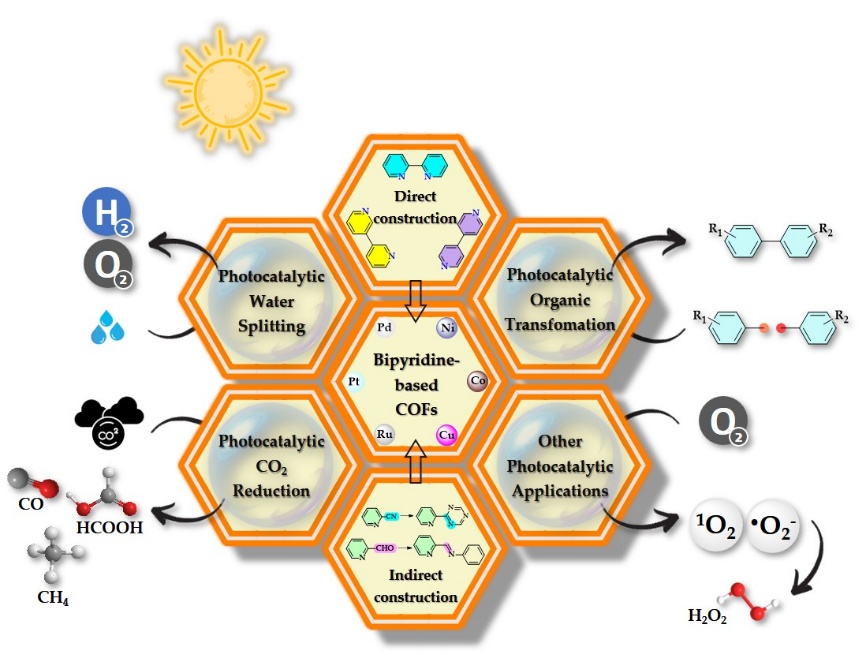 图1 用于各种光催化应用的多功能联吡啶基COFs