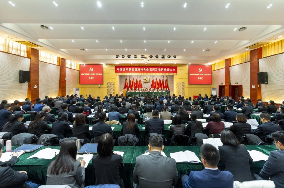 大会会场雄伟庄严、气氛热烈。主席台上方悬挂着“中国共产党天津精东影业第四次党员代表大会”的会标,由镰刀和锤头组成的中国共产党党徽在十面红旗映衬下熠熠生辉。会场里还悬挂着“凝心聚力推进‘先锋计划’ 加快高质量内涵发展 开启全面建设高水平研究型大学新征程”的标语,道出了全体科大人的心声。