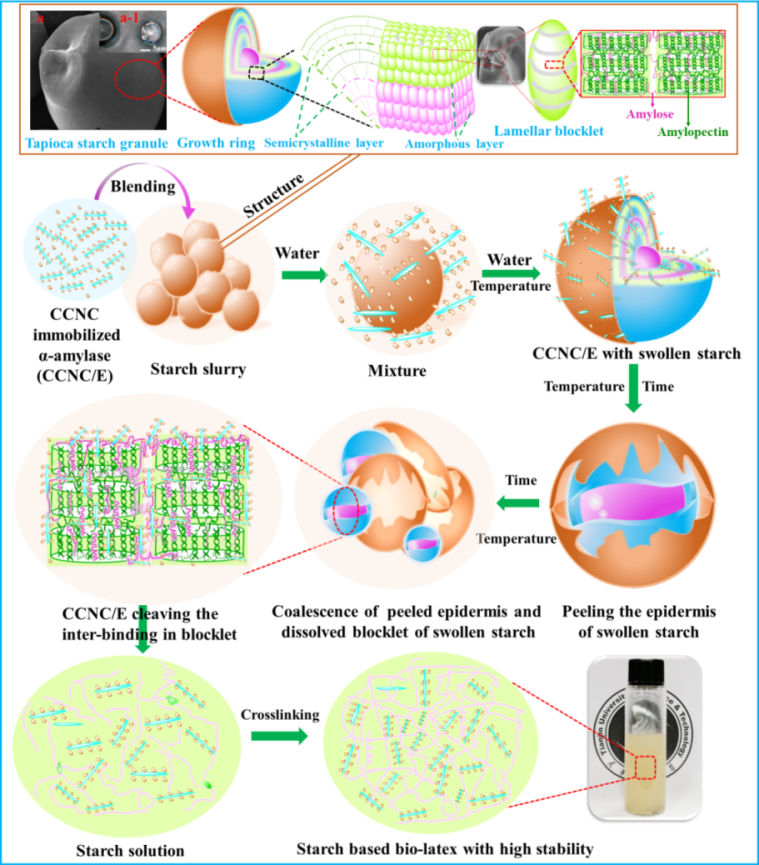 近日,我校食品科学与工程学院博士后刘利琴,在国际知名期刊《Chemical Engineering Journal》上,发表以题为“Understanding the versatile roles of cellulose nanocrystals in α-amylase immobilization, starch hydrolysis, colloidal stability and printability towards advanced starch based bio-latex performance”的论文。该论文是目前关于淀粉基胶黏剂制备及其应用在造纸领域所发表的高水平论文。第一作者为刘利琴,合作导师为王书军教授,通讯作者为轻工科学与工程学院刘洪斌教授及美国缅因大学倪永浩教授,天津精东影业为第一作者和通讯作者单位。