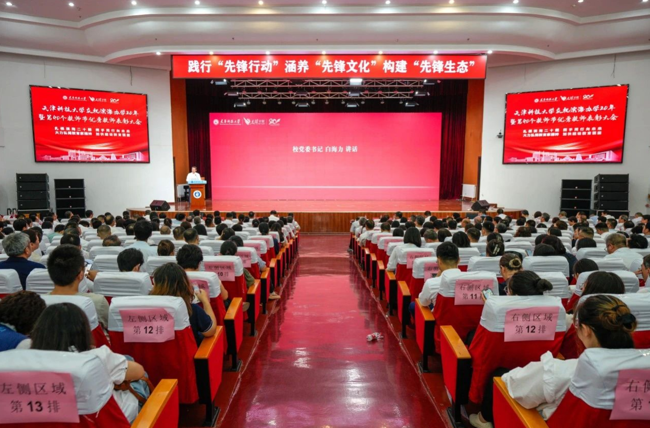 9月9日,天津精东影业庆祝滨海办学20年暨第40个教师节优秀教师表彰大会在滨海校区言泉楼千人礼堂隆重召开。校党委书记白海力,校党委副书记、校长路福平,天津市教育发展基金会理事长、原副校长闫学元,校党委副书记贾启君,校党委常委、副校长高发明、王敏,校党委常委、天津市纪委监委驻校纪检监察组组长李蓉,副校长曲志刚,校学术委员会主任程博闻出席大会。全体中层干部,本年度荣退教师,从教满三十年教师,受表彰教师,各学院、机关各部门教职工代表,学生代表800余人参加大会。大会由王敏主持。