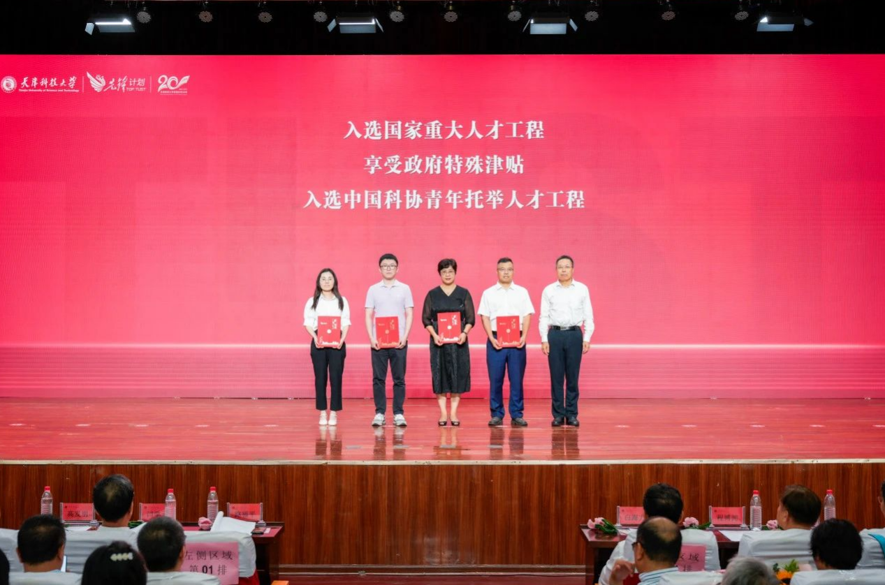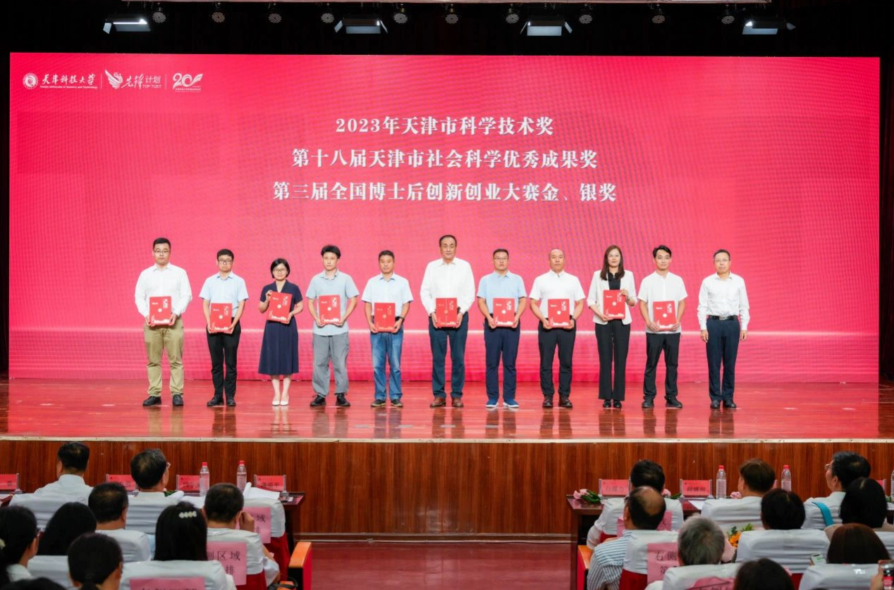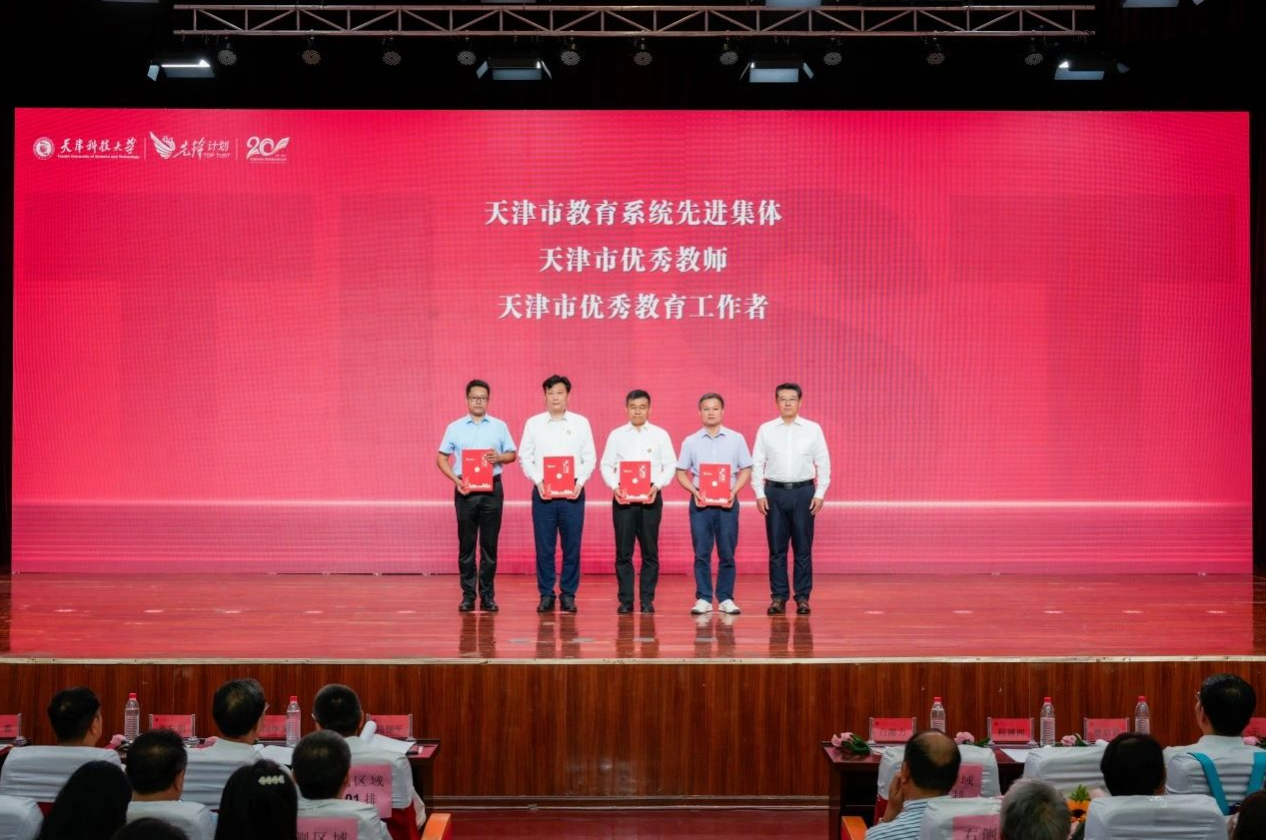 白海力为获得天津市教育系统荣誉称号和国家科学技术奖励的集体和个人颁发证书。