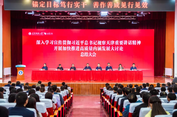 3月29日,我校召开“深入学习宣传贯彻习近平总书记视察天津重要讲话精神开展加快推进高质量内涵发展大讨论”总结大会。校党委书记白海力出席会议并讲话。校党委副书记安玉健、贾启君,党委常委、副校长高发明、王敏,党委常委、天津市纪委监委驻校纪检监察组组长李蓉,副校长曲志刚出席会议。校党委副书记、校长路福平主持会议。全体中层干部、驻校纪检监察组有关同志、全体科级干部、校学术委员会委员、重点实验室和社科基地负责人、各民主党派负责人、统战团体代表、各学科带头人、各系主任、正高级职称教师、青年教师代表、离退休教师代表、辅导员代表、学生代表参加会议。