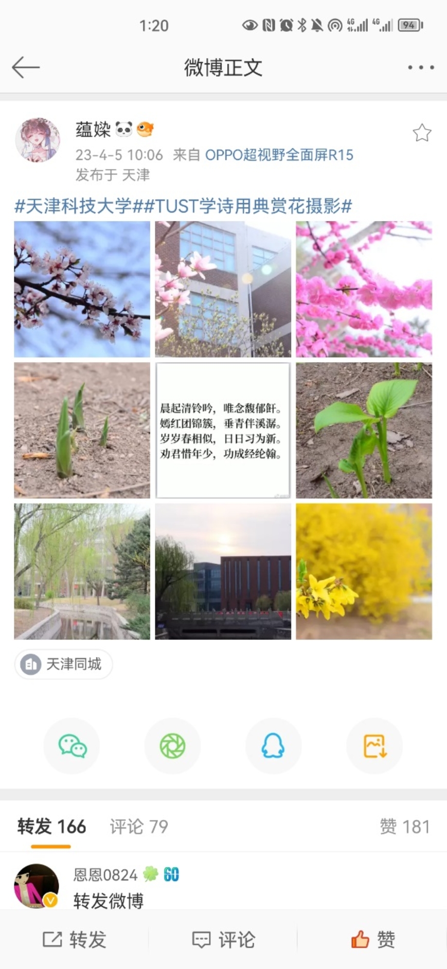 在全面贯彻党的二十大精神的开局之年,在这个充满希望的春天,科大校园里,举办了一场非同寻常的诗画共赏摄影大赛,把师生对春天的赞美和褒奖之情燃至最高。