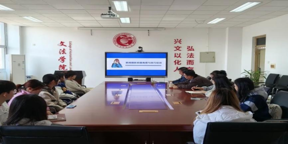 为提升学院公众号的图文质量,进一步提高新媒体学生对会议、活动记录的水平,2024年3月22日,文法学院党委书记苟军平为社团相关部门的同学进行了新闻摄影拍摄角度与技巧培训。