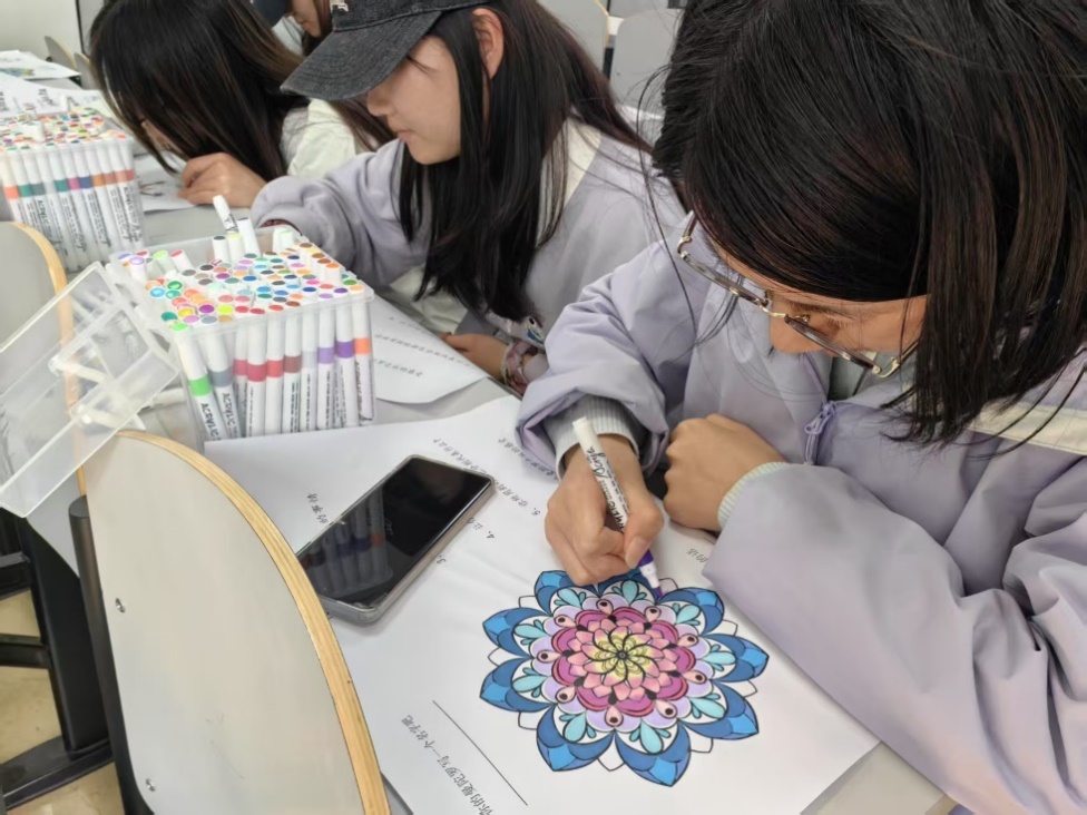 在“5·25”心理健康月活动期间,机械工程学院心理健康辅导工作站以“曼陀罗绘画”为载体,吸引学生参与沉浸式心理探索。本次活动以“阳春寻暖,绘画识心”为主题,以“压力释放-情绪觉察-自我重构”为主线,通过艺术创作与心理引导相结合的形式,让同学们在色彩与线条的交织中释放压力、沉淀思绪、唤醒内在能量,为日常学习生活注入积极心态与创造活力。