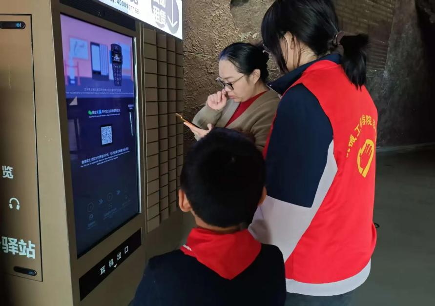 博物馆内,志愿者们细心整理工作材料,做好工作记录,同时,他们也保证着服务中心的干净整洁,让游客们有着更好的游览体验。为了让游客更好地了解有关大沽炮台的历史事件以及每一件文物背后的故事,志愿者们帮助游客使用自助语音导览租赁服务,让游客们从视听方面有着沉浸式的体验。