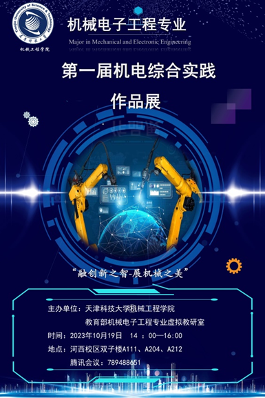 2023年10月19日,以“融创新之智 展机械之美”为主题的机械工程学院第一届“机电综合实践作品展”在河西校区A111教室、A204教室、A212教室及线上同时举行,该活动由机械工程学院和教育部机械电子工程专业虚拟教研室共同主办,机械电子工程系全体教师及2020级机械电子工程专业本科生参加答辩及展示,2021-2023级机械工程学院部分本科生旁听及观摩,天津理工大学部分师生线上参与。